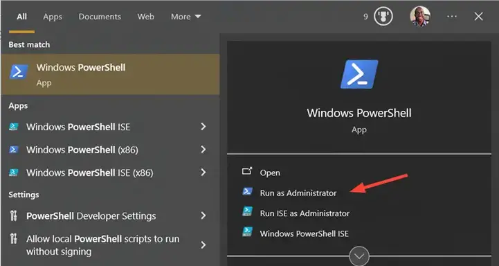 第一步是在 Windows 系统上启用 WSL 功能,请以管理员身份启动 Windows PowerShell。