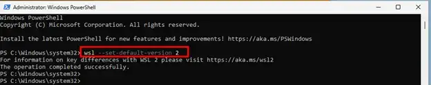 此外,请考虑将 WSL 版本 2 设置为默认版本。